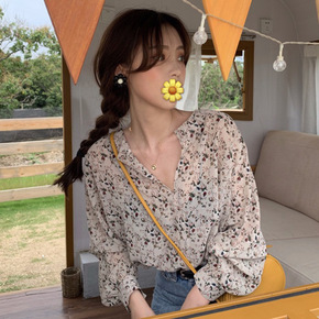 1120长袖雪纺碎花衬衫女夏轻奢设计高级感小众炸街...