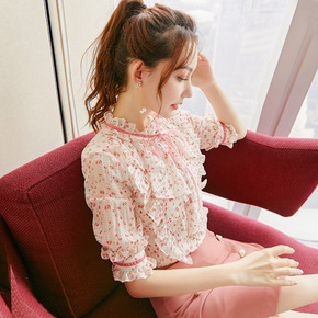 碎花雪纺衫女短袖2022夏装新款很仙的甜美洋气小衫...
