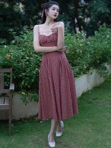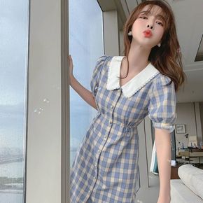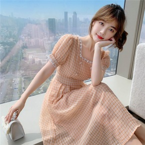夏季新款甜美温柔风初恋裙收腰显瘦淑女气质格子短袖超...