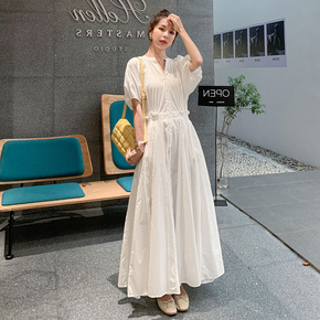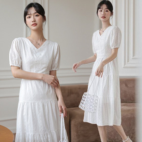 实拍新款超仙白色高腰连衣裙夏季法式赫本风气质女神范...