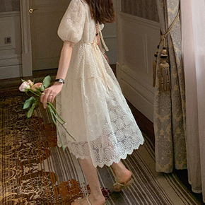 2022夏季新款蕾丝法式连衣裙甜美温柔气质泡泡袖森...