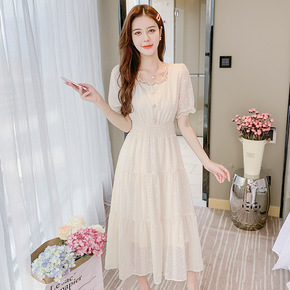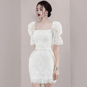 2021新款显瘦收腰小众气质裙子法式名媛仙女蕾丝白...