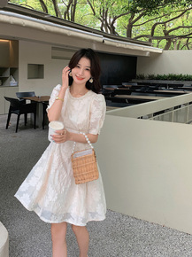 奶甜美温柔风连衣裙女设计感小众夏季2022新款韩系...