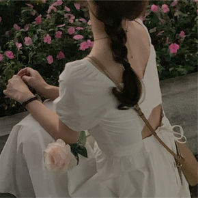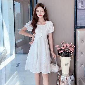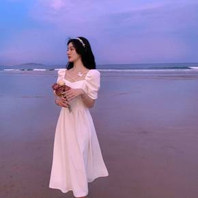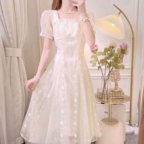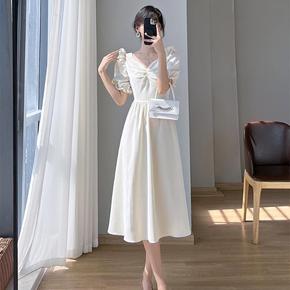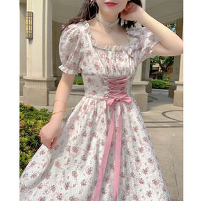 人间水蜜桃法式公主裙仙女收腰长款白碎花初恋连衣裙女...