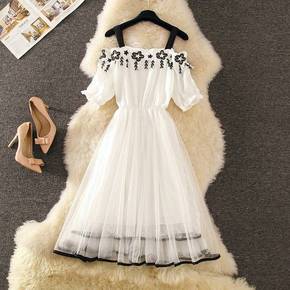 2022夏装新款V领背心仙女长裙女复古重工刺绣修身...