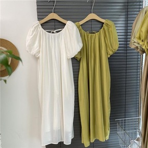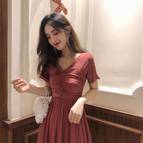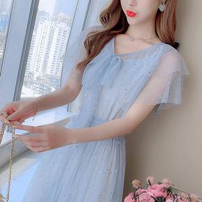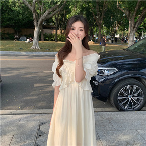 夏装气质简约超仙甜美裙子中长款收腰荷叶边连衣裙大摆...