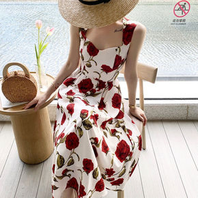 裙子新款2022年夏天高档连衣裙潮超仙显瘦长裙印花...
