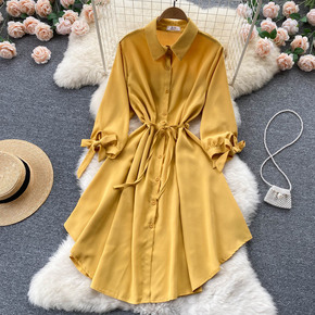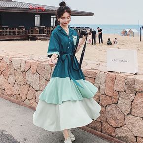 实拍赫本不规则连衣裙大码超仙气质衬衫长裙胖妹妹法式...
