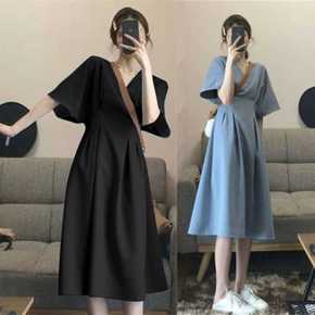 胖mm大码女装法式收腰连衣裙夏季V领气质胖mm过膝...