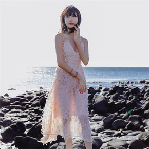 三亚沙滩裙女夏吊带性感露背显瘦海边度假蓝色超仙长款...