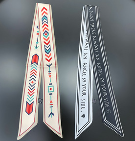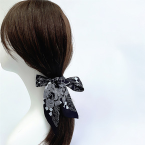 新款简约黑白花卉 女士斜纹小丝巾绑包包手柄丝带 发...