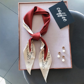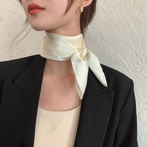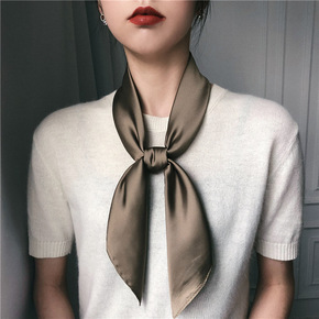 韩国复古简约纯色丝巾小方巾女百搭装饰领巾发带仿丝绸...
