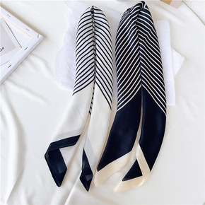 韩国ins春夏秋款简约风条纹小丝巾装饰百搭小领巾女...