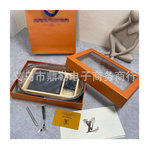 新款男士老花棋盘格黑扣字母黑花皮带钱包钱夹礼盒装商...