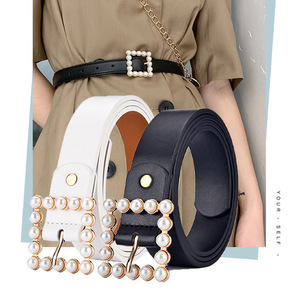 新款亚马逊珍珠腰带网红跨境工厂学生男女士时尚水钻镶...