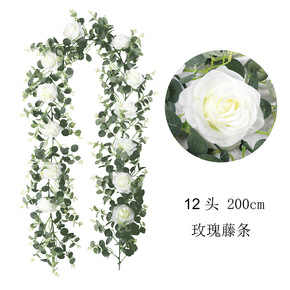 仿真玫瑰花藤壁挂客厅墙面装饰绿植塑料藤蔓假花室内管...