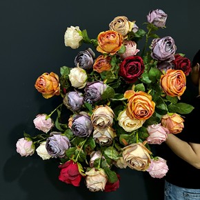 仿真玫瑰花 高仿真植绒假花桌面摆设绢花 仿真手工花...