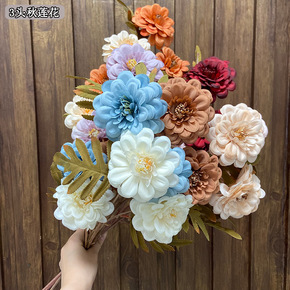 厂家批发婚庆秋莲花 仿真小菊花绢花单支3头带叶大量...