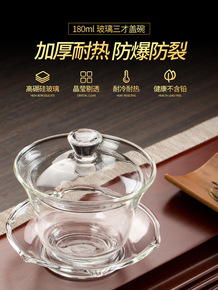 玻璃盖碗茶杯功夫茶具套装加厚透明泡茶壶手工大号敬茶...
