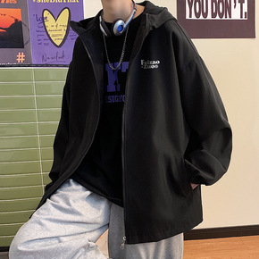 跨境外贸秋冬新款夹克男亚马逊男装连帽休闲撞色运动外...
