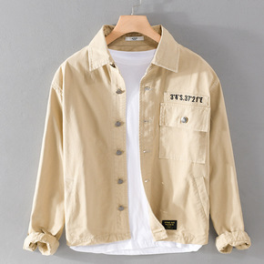 春秋季男装夹克外套休闲潮流工装时尚青年衬衣外套纯棉...