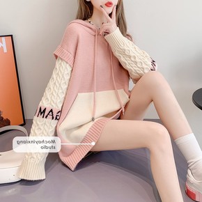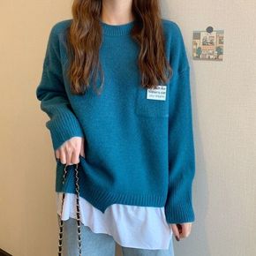 2021新款时尚图领毛衣百搭假两件洋气上衣韩版潮流...
