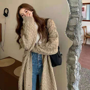 女装2021新款女潮ins春秋季中长针织开衫毛衣慵...