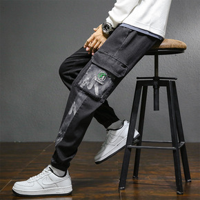 外贸代购ebay 款韩版潮流宽松大码工装裤纯棉水洗...