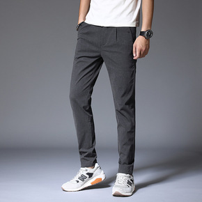 2021春秋男式休闲裤男士修身无弹小直筒男装裤子时...