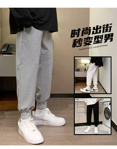 男裤秋冬款休闲裤子男宽松百搭韩版潮流纯棉学生九分束...