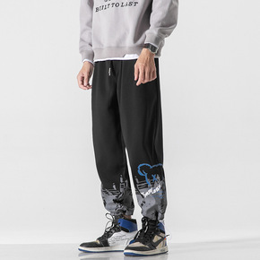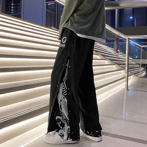 休闲裤男秋季2021潮流时尚阔腿裤青年街头个性男裤...