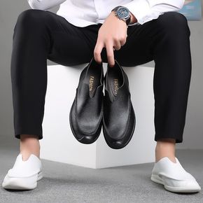 夏季男一脚蹬男鞋懒人鞋英伦防滑防水工作鞋皮面鞋子秋...