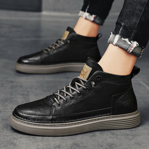 四季真皮百搭潮流增高板鞋新款男鞋韩版时尚休闲运动鞋...