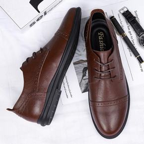 新款头层牛皮男鞋男士商务休闲皮鞋男婚鞋职场低帮正装...