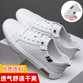 2021新款男鞋抖音同款韩版时尚小白鞋系带休闲皮鞋...