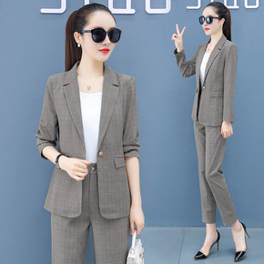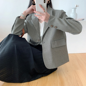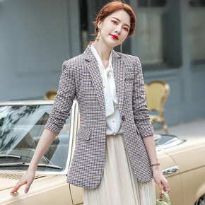 2021秋季新款女装休闲翻领小西服韩版显瘦气质千鸟...