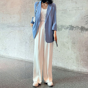 【言双】2022春季新款小西装外套薄款女垂感网红雪...