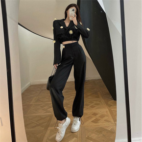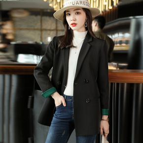 黑色西装外套女上衣2021春秋季新款休闲宽松大码高...