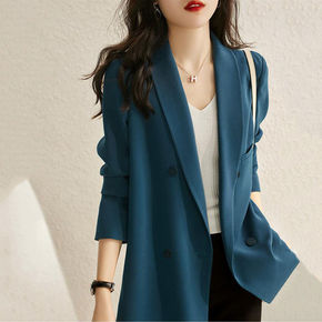 2022新款毛呢休闲现货双排扣无开衩宽松型侧缝插袋...