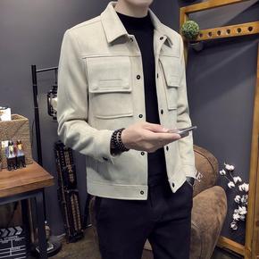 秋冬季新款麂皮绒夹克潮流韩版男士修身外套加棉加厚休...