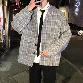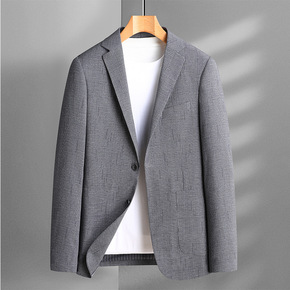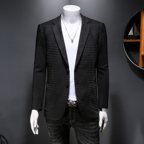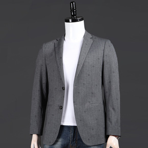 跨境欧美男装货源现货四季通用灰色格子时尚休闲西服外...