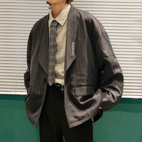 秋季冷淡风个性小心机无领简约潮流百搭短款西服男外套...