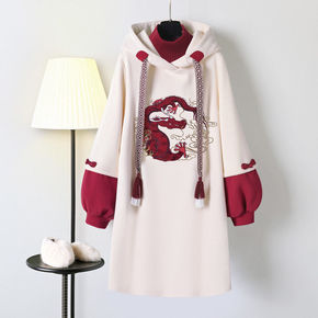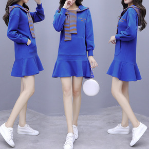 秋冬2021新款女装韩版条纹连帽荷叶边连衣裙加绒加...