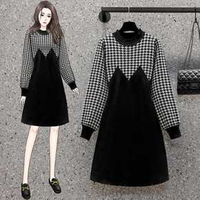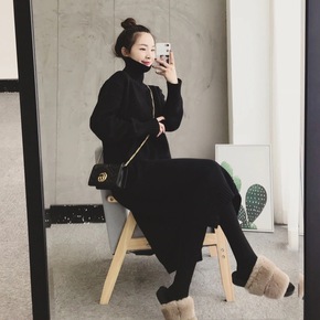 针织衫女黑色连衣裙 秋冬 中长款新款女式打底A字毛...