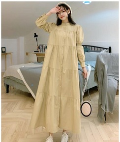 21春款现货代发开衫大码女连衣裙棉宽松长裙赫本风开...