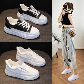 2021春季新款小白鞋女皮面休闲百搭帆布鞋ins潮...