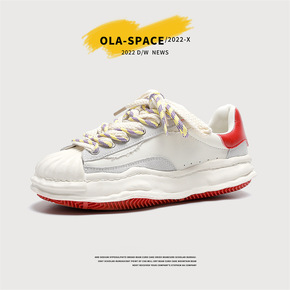 贝壳头溶解鞋女2022春季新款牛皮松榚厚底小白鞋运...