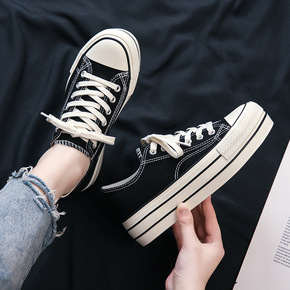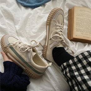 包邮厚底高帮帆布鞋女学生韩版2021新款原宿复古港...