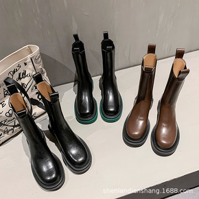 禾央央mona网红同款全真皮马丁靴女冬英伦风中筒烟...