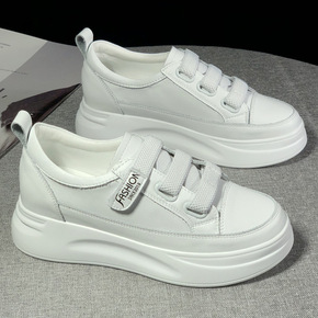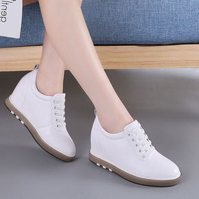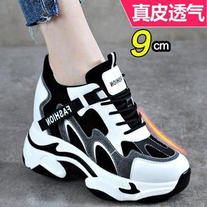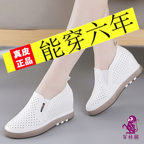 10公分内增高女鞋夏季镂空透气厚底真皮小白鞋女休闲...